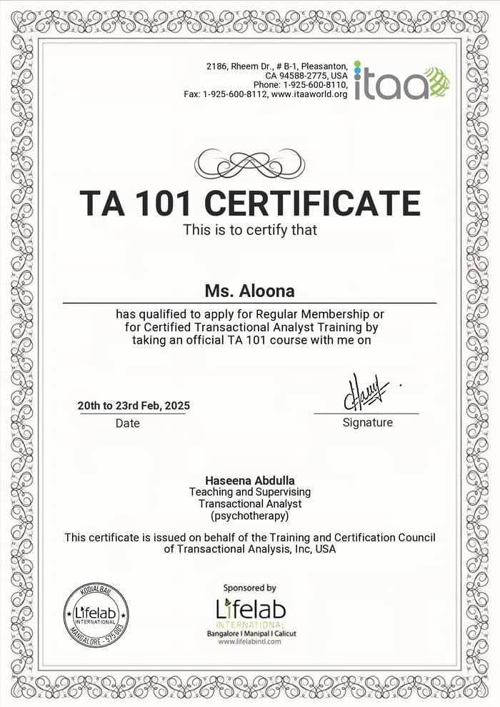 I’d read about TA, but Haseena’s TA 101 truly brought it to life. Her ability to explain complex ideas with clarity and empathy was incredible. Being part of a diverse cohort made the learning richer, it was powerful to see how differently we processed the same ideas, yet connected through shared insights.